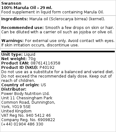 Tutustu Swanson Premiumin 100 %: n Marulaöljyn luonnollisiin etuihin. Uutettu ravinteikkaasta Marulahedelmän siemenistä, tämä öljy tunnetaan antioksidanttien ja välttämättömien rasvahappojen runsaudesta, jotka tukevat ihon ja hiusten terveyttä.
