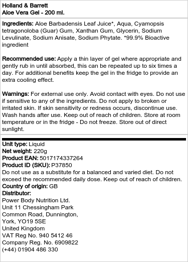Holland & Barrett takaa korkealaatuisen tuotteen valmistettuna orgaanisista raaka-aineista. Levitä ohut kerros geeliä iholle ja hiero varovasti kunnes se imeytyy kokonaan; toista jopa kuusi kertaa päivittain optimaalisen vaikutuksen saavuttamiseksi. Lisää viilennystehoa varten geeli voidaan säilyttää jääkaapissa!