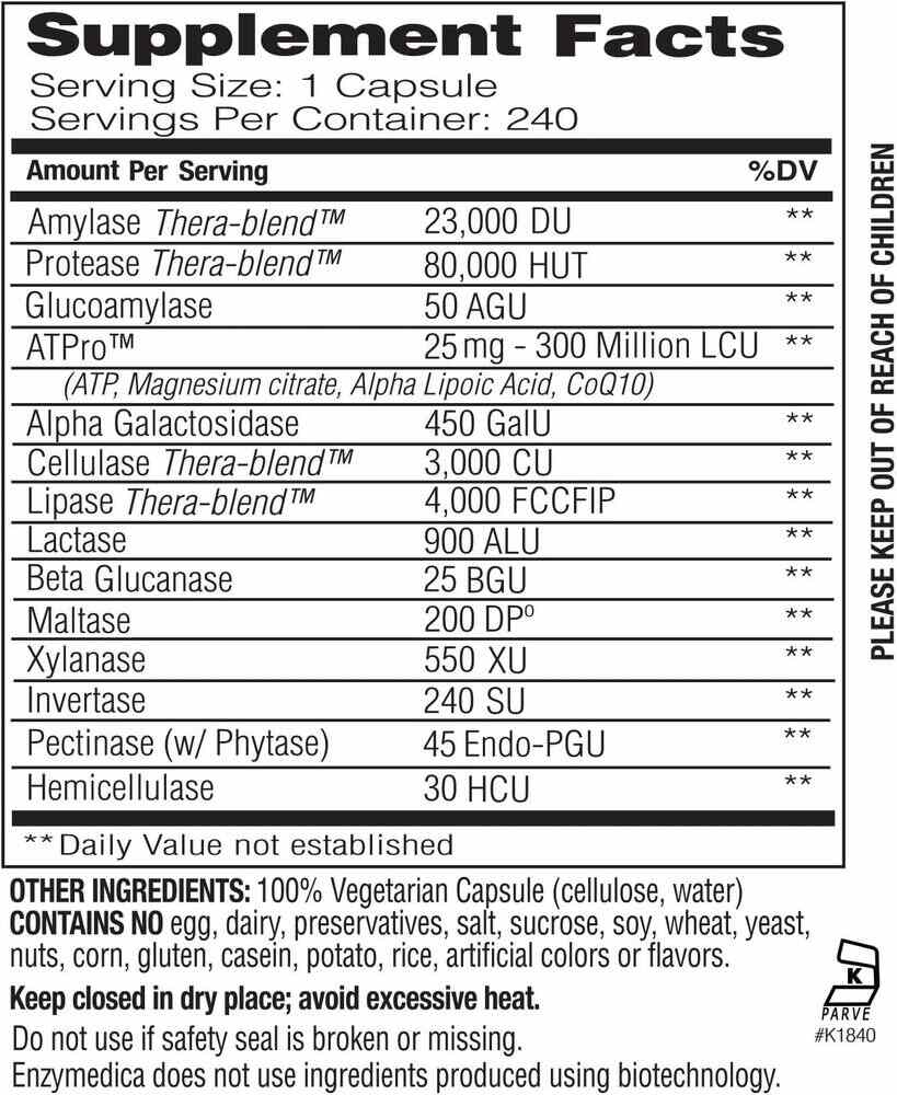 Enzymedica Digest Gold sisältää useita aktiivisia ainesosia, kuten amylaasia, proteaasia ja lipaasia. Nämä entsyymit ovat perinteisesti käytettyjä edistämään ruoansulatusprosesseja. Tuote on valmistettu ilman keinotekoisia lisäaineita ja se on 100% vegaaninen.