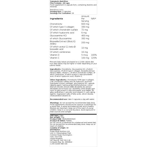 Todella kunnollinen koostumus, joka yhdistää kaikki ainesosat, jotka yhdistät terveyteen nivelsiteisiin, jänteisiin ja niveliin. Hyraluronihappo, glukosamiini, kondroitiini jne., se on täydellinen kaava treenaaville ja painoilla rasittavalle, iskuurheilua harrastavalle ja nivelsiteet rasittavalle tai jopa vanhemmille ihmisille, joiden nivelet ovat aamuisin jäykemmät sään mukaan. Flex formula on kaikille näille ihmisille. Pidän tästä, koska se on niin kattava kaiken sen kanssa 🙂