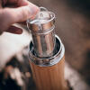 Bambu on ympäristöystävällinen materiaali, joka kasvaa nopeasti vähällä vedelllä eikä tarvitse kasvuunsa torjunta-aineita. Ruostumaton teräs ei reagoi juomien kanssa, miksi se säilyttää juomat puhtaina ja turvallisina nauttia.