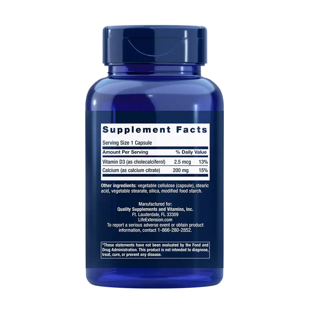 Kalsium (kalsiumsitraatti), D3-vitamiini (kolekalsiferoli), kasviskapseli (selluloosa), riisijauho, kasviperäinen stearaatti, piidioksidi.