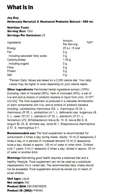Oplev fördelarna med fermenterade ekologiska örter med Herbeautys probiotiska extrakt. Denna kosttillskott är rik på naturliga bioaktiva ingredienser och innehåller levande probiotiska bakteriestammar samt postbiotika som främjar en hälsosam mikroflora.