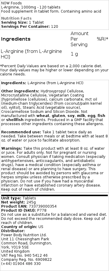 - Sisältö: Jokainen tabletti sisältää 1000 mg L-arginiinia.