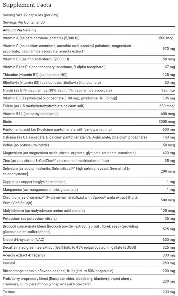 Tämä on yksi kattavimmista saatavilla olevista vitamiini- ja kivennäisvalmisteista, joka sisältää suurimman osan, ellei kaikkia välttämättömistä mikroravintoaineista kohtuullisina annoksina optimaalisen terveyden ja hyvinvoinnin tukemiseksi sekä edistää normaalia vakaata energiatasoa. Pidän siitä, että tämä sisältää mm. laaja valikoima ravintoaineita koko kehon optimaalisen terveyden varmistamiseksi yleisen pitkäikäisyyden tukemiseksi, mukaan lukien korkealaatuinen vihreä teeuute, joka mielestäni toimii hyvin immuunijärjestelmän toiminnan parantamisessa ja toimii myös luonnollisena rasvanpoltona. yhdiste, jonka sisällytän aina useisiin rasvanpudotusravintolisoihini, koska se lisää tehokkaasti termogeneesiä ja mahdollistaa enemmän kalorien polttamisen päivittäin, mikä parantaa useiden rasvanpudotukseen perustuvien laihdutusvaiheiden tuloksia. Tämä huippulaatuinen tuote sisältää myös kohtuullisen määrän jodia ja seleeniä, jotka mielestäni edistävät kilpirauhashormonien optimaalista tuotantoa tukemaan normaalia aineenvaihduntaa, kun taas mukana oleva boori toimii hyvin yhdessä sinkin, magnesiumin ja d3-vitamiinin kanssa auttamaan hormonien tuotantoa. steroni mahdollistaa normaalin hormonitason ylläpitämisen ja tehostaa mitä tahansa vähärasvaisen massan kasvuun, palautumiseen tai rasvanpudotukseen perustuvaa vaihetta edistämällä voimatason, vähärasvaisen massan ja yleisen hyvinvoinnin lisääntymistä. Olen myös huomannut, että tämä tuote sisältää maidon ohdakeuutetta ja NAC:ta tai (n-asetyyli-l-kysteiiniä), jotka ovat kaksi erinomaista yhdistettä, jotka tukevat maksan optimaalista terveyttä ja toimintaa ja tekevät tästä erinomaisen lisäravinteen kaikille maksan kuluttajille. myrkylliset aineet, kuten tietyt lääkkeet ja alkoholi, suojelemaan sitä ja mahdollistamaan sen pysymisen terveemmässä tilassa. Yleisesti ottaen tämä on yksi erittäin tasapainoinen ja kattava lisäravinne, joka tarjoaa joukon tärkeitä yhdisteitä, jotka mielestäni toimivat loistavasti yhdessä toistensa kanssa muodostaen täydellisen superterveyttä tukevan ravintolisän, joka toimii hyvin, kun sitä käytetään useiden eri laihdutusvaiheiden aikana. kokonaistuloksesi saavuttaa henkilökohtaiset tavoitteesi fyysisen rakenteen ja yleisen terveyden parantamiseksi. Vielä täydellisemmän terveyden tukemiseksi suosittelen tämän ottamista yhdessä kunnollisen kalaöljypohjaisen ravintolisän kanssa, joka mahdollistaa tärkeiden välttämättömien rasvahappojen kulutuksen.