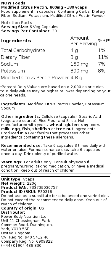 NOW Foods – Modified Citrus Pectin, Pure Powder on luonnollinen tuote, joka on valmistettu sitrushedelmistä. Tämä hieno jauhe on suunniteltu olemaan kätevä ja monipuolinen ainesosa päivittäisessä ruokavaliossasi, ja sitä voidaan käyttää erilaisissa resepteissä ja juomissa.