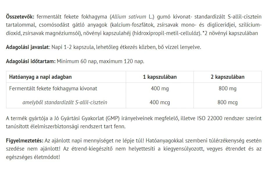 Pääainesosana käytetty fermentoitu musta valkosipuli on perinteisesti arvostettu sen monipuolisten hyötyjen vuoksi. Fermentoinnin myötä valkosipulin yhdisteet muuttuvat miedommiksi ja helpommin sulaviksi, mikä tekee siitä erinomaisen vaihtoehdon niille, jotka haluavat nauttia valkosipulin eduista ilman voimakasta hajua ja makua.