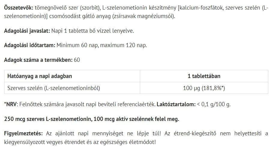 Tuote sisältää orgaanista seleeniä, joka on peräisin luonnonmukaisesti viljellyistä lähteistä. Seleeni on tärkeä hivenaine, jota keho tarvitsee monien perustoimintojen ylläpitämiseen.