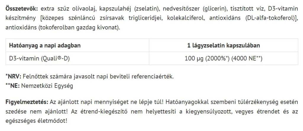 Kokeile jo tänään Natur tanya Olive D3-Vitaminia – huomaa ero terveydessasi ja lisää elämänlaatuasi! Vahva annos varmistaa tehokkuuden pitkälllä aikavälilllä.