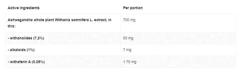 Ostrovit ashwagandha sisältää 100% luonnollista ashwagandha-uutetta. Ashwagandhaa on perinteisesti käytetty tukemaan kehon kykyä selviytyä stressistä ja edistämään yleistä hyvinvointia.