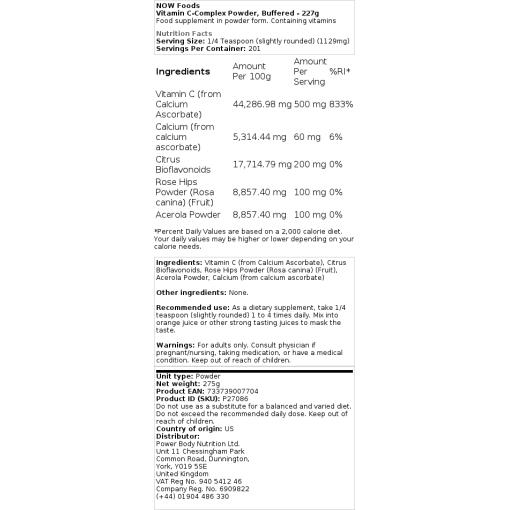 NOW Foods – C-vitamiinikompleksi jauhe, puskuroitu – 227g