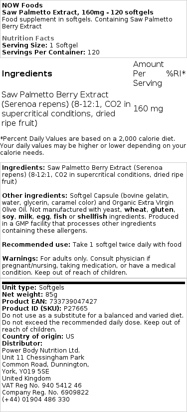 NOW Foods – Saw Palmetto Extract on luonnollinen ravintolisä, joka sisältää 160 mg uutetta per kapseli. Tämä tuote on suunniteltu osaksi päivittäistä rutiiniasi ja tarjoaa kätevän tavan sisällyttää saw palmetto ruokavalioosi.