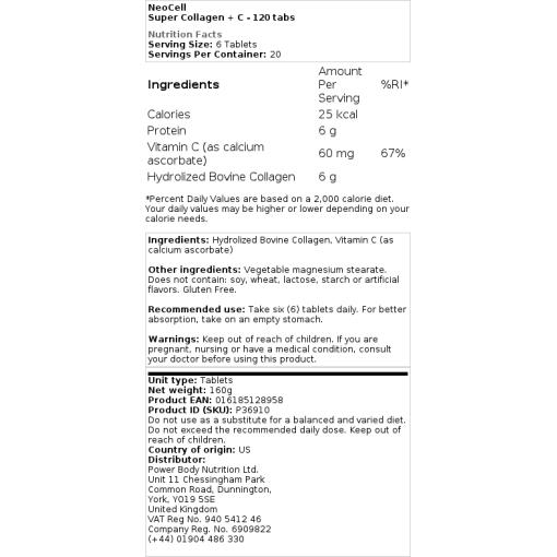 Avaa NeoCell Super Collagen + C:n voima, luonnollinen ravintolisä, joka on suunniteltu edistämään yleistä hyvinvointia ja tukemaan terveellistä elämäntapaa. Ainutlaatuisen yhdistelmän kollageenia ja C-vitamiinia avulla tämä tuote auttaa ylläpitämään ihon kimmoisuutta ja vahvuutta sekä edistää terveitä hiuksia ja vahvoja kynsiä.