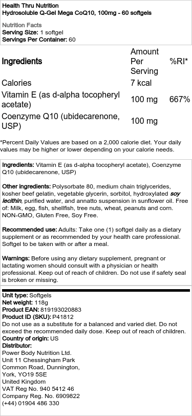 Health Thru Nutrition – Hydrosoluble Q-Gel Mega CoQ10